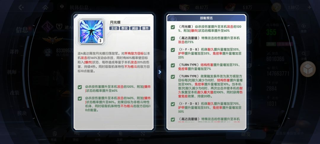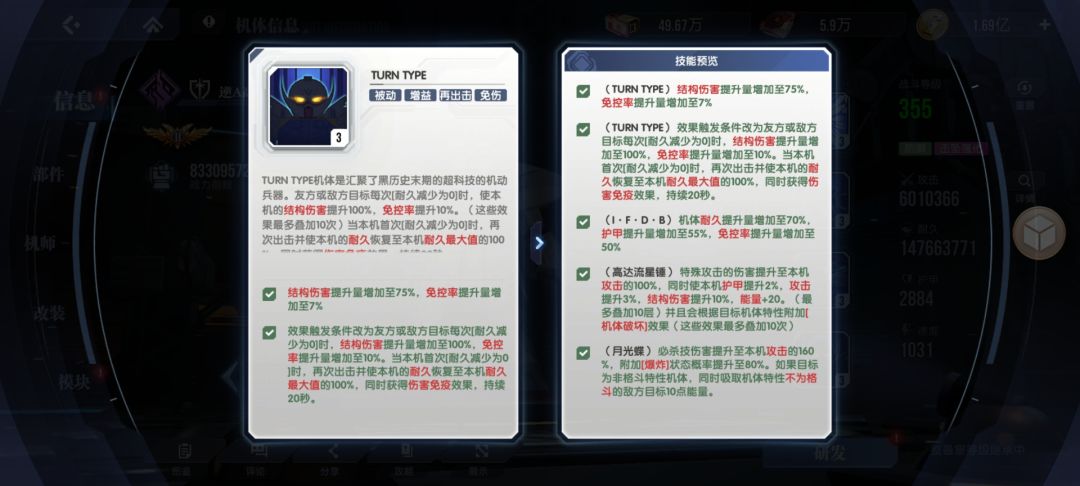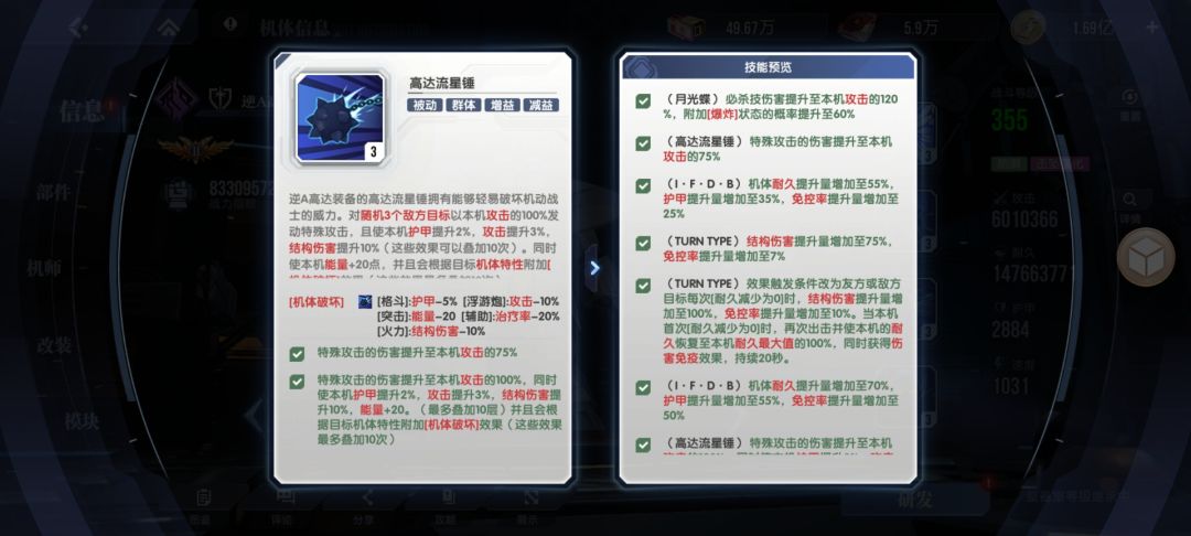 四技能是逆A的核心技能,场上只要有人耐久清0,就可以提升自己100%结构伤害和10%免控,并且自己耐久清0的时候可以满血复活并免疫伤害20秒。这个耐久清0的加成是包括某些机体技能的技能清0效果和紫哈罗清0回血效果的。也就是说如果带上独角兽高达(ntd)和紫哈罗的话,可以同一个机体多次触发此技能的被动,更多的叠加结构伤害和免控效果。