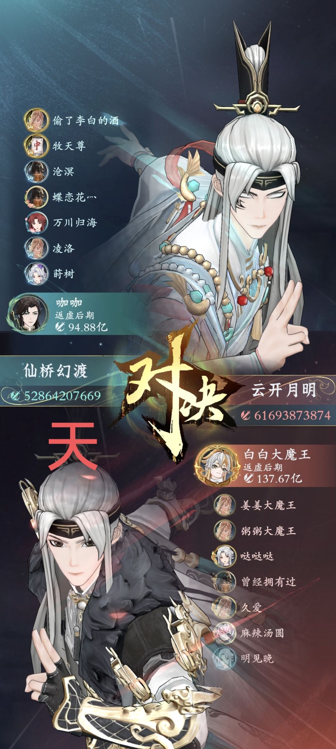 - **云开月明**:**白白大魔王(战力137.64亿)**率领**甲组**