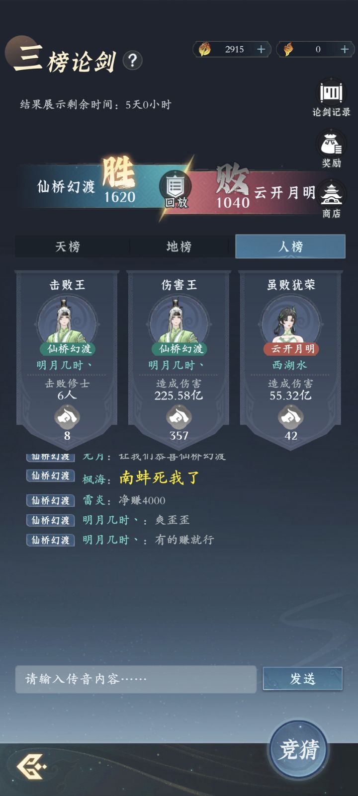 至此,**三榜论剑**圆满落幕。**仙桥幻渡**一战封神,而**云开月明**的修士们,怕是回去要恶补《孙子兵法》了。让我们期待下一届论剑,看云开能否一雪前耻!