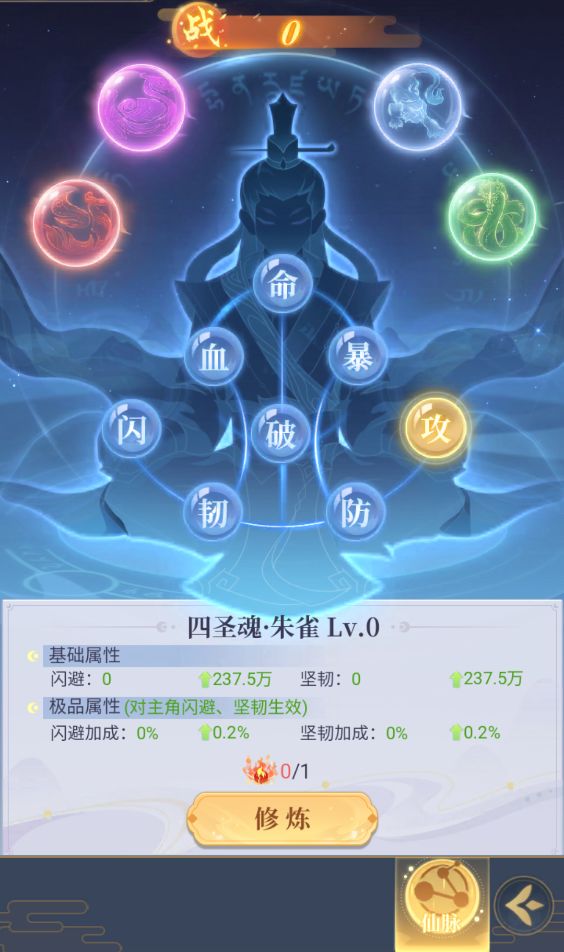 仙脉分为四圣魂仙脉与八大基础仙脉,四圣魂分别是青龙、白虎、朱雀玄武四圣兽幻化而成,主掌闪避、防御、攻击、命中,四圣魂对于属性增幅极高,还请各位仙友们注意获取~修炼不同的仙脉则可获得不同的属性效果。仙魂具有五个不同的品质,默认展示最高品质的仙魂,当拥有仙魂时,会展示自身已有的最高品质的仙魂,修炼时默认修炼已有的最高品质的仙魂。