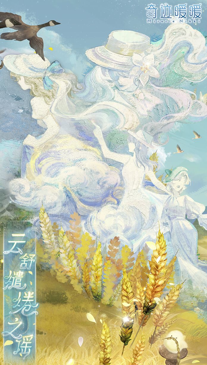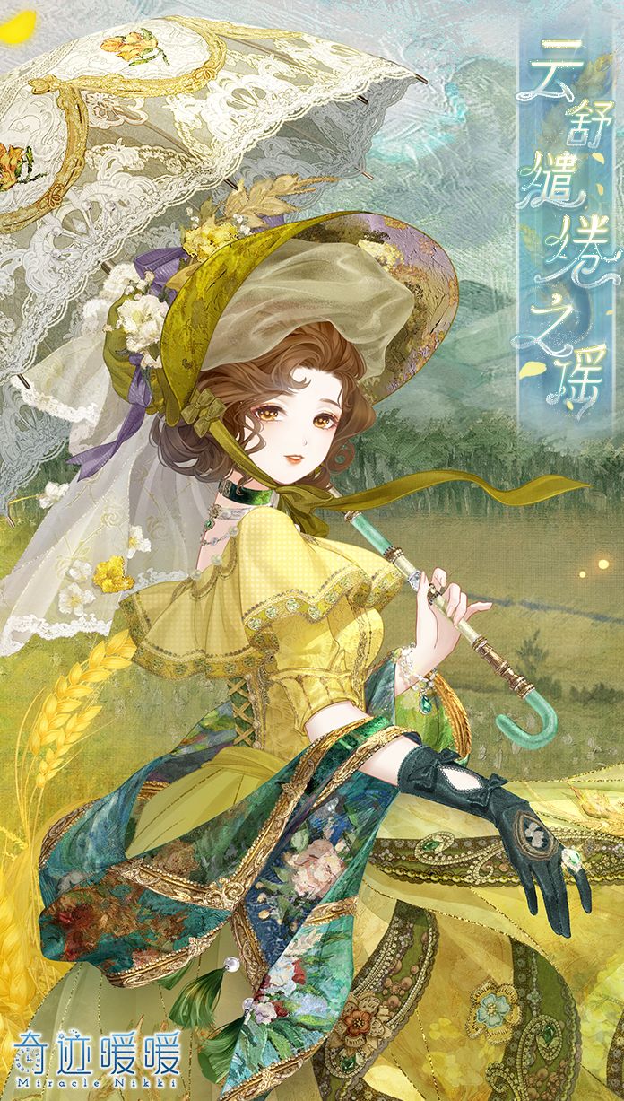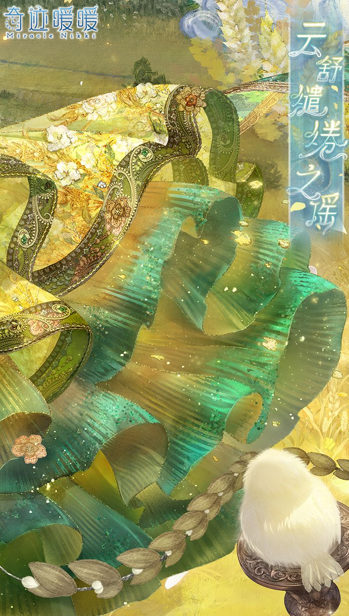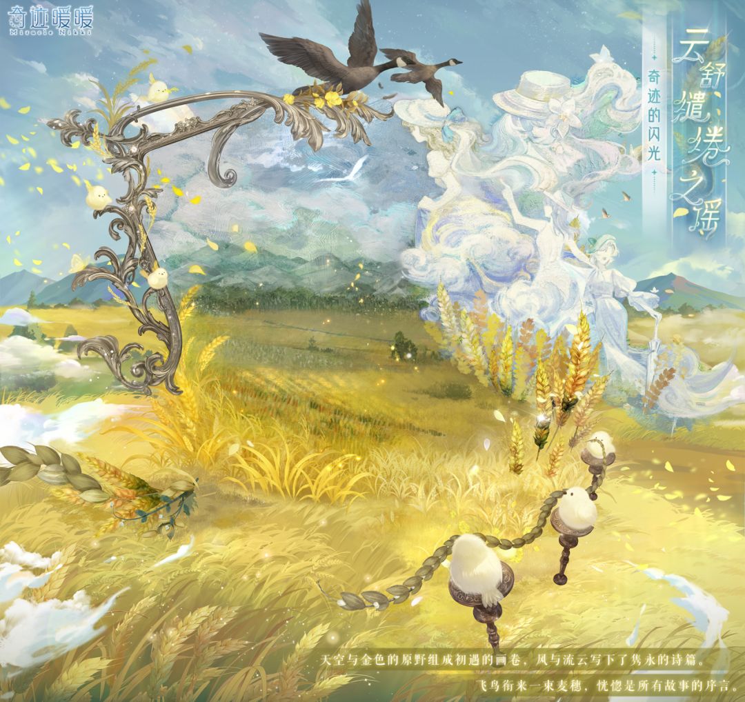 【云舒缱绻之谣】含正常姿势与特殊姿势,全新妆容“朗彻回忆”,动态特姿连衣裙“云舒缱绻之谣”、“云舒缱绻之歌”,动态摆件“青空麦野”、“飞鸟铺陈”、“鸣啭悠曲”、“云影绰绰”,动态发型“高致逸韵”,动态头饰“隽永诗篇”。