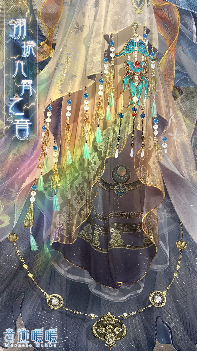 【翎振九霄之音】含正常姿势与特殊姿势,全新妆容“熠日朱颜”,精美面饰“丹霞点绛”,动态特姿连衣裙“翎振九霄之音”,动态摆件“垂云之翼”、“青霄鸣鸾”、“戛玉鸣冰”、“流霞荟蔚”,动态发型“烟霭叠岫”,动态头饰“黛羽衔珠”、“金玉玎珰”、“珠零锦粲”。
