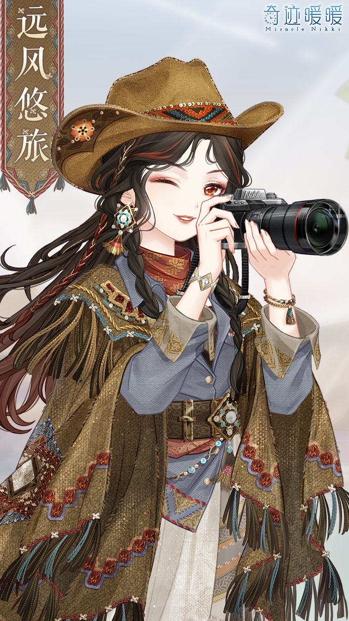 【远风悠旅】含正常姿势与特殊姿势,特殊姿势上衣“远风悠旅”、“远风行吟”。海报展示妆容为“丛林迷踪”。