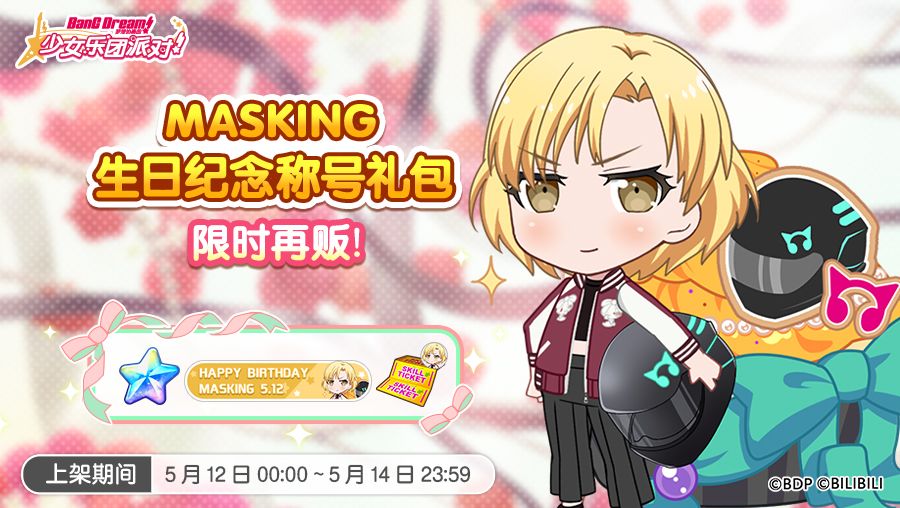 为庆祝MASKING的生日,游戏内将于明日0:00再次上架「MASKING生日纪念称号礼包」!