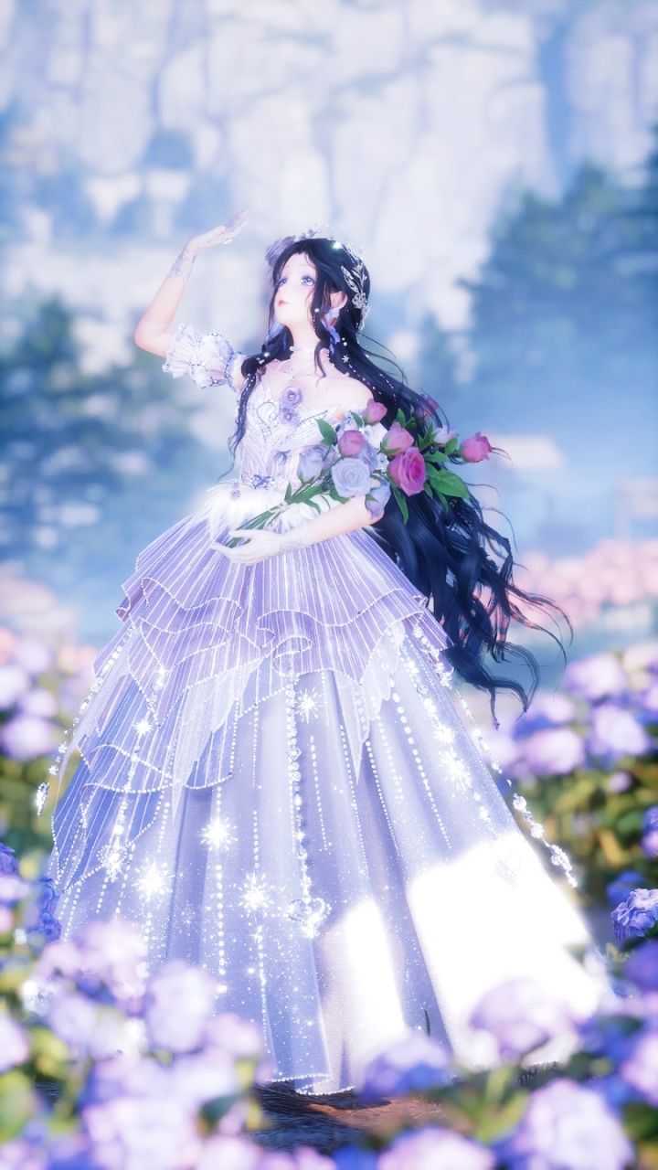 谁来懂一下紫天鹅的仙女感啊~天鹅裙染紫色真的太美貌了!祈愿森林种植园里有很多紫色的花可以拍出超梦幻的花海~