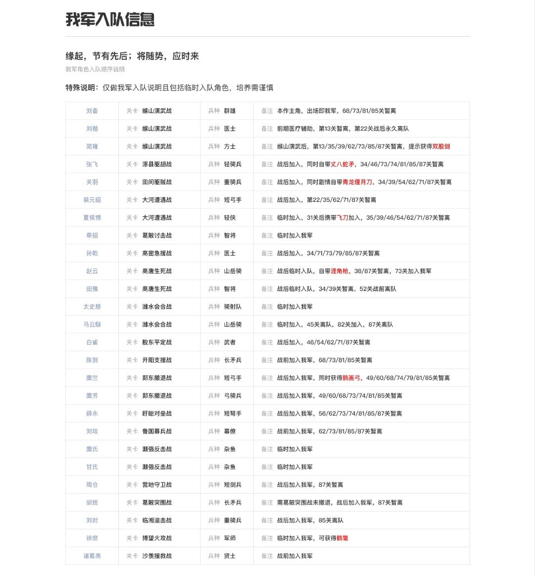 注意,有些武将很快离场,用一用就行,不要刻意培养。比如前期的奶妈刘楷,中期的田豫,随便升级就行了,不要培养属性点。