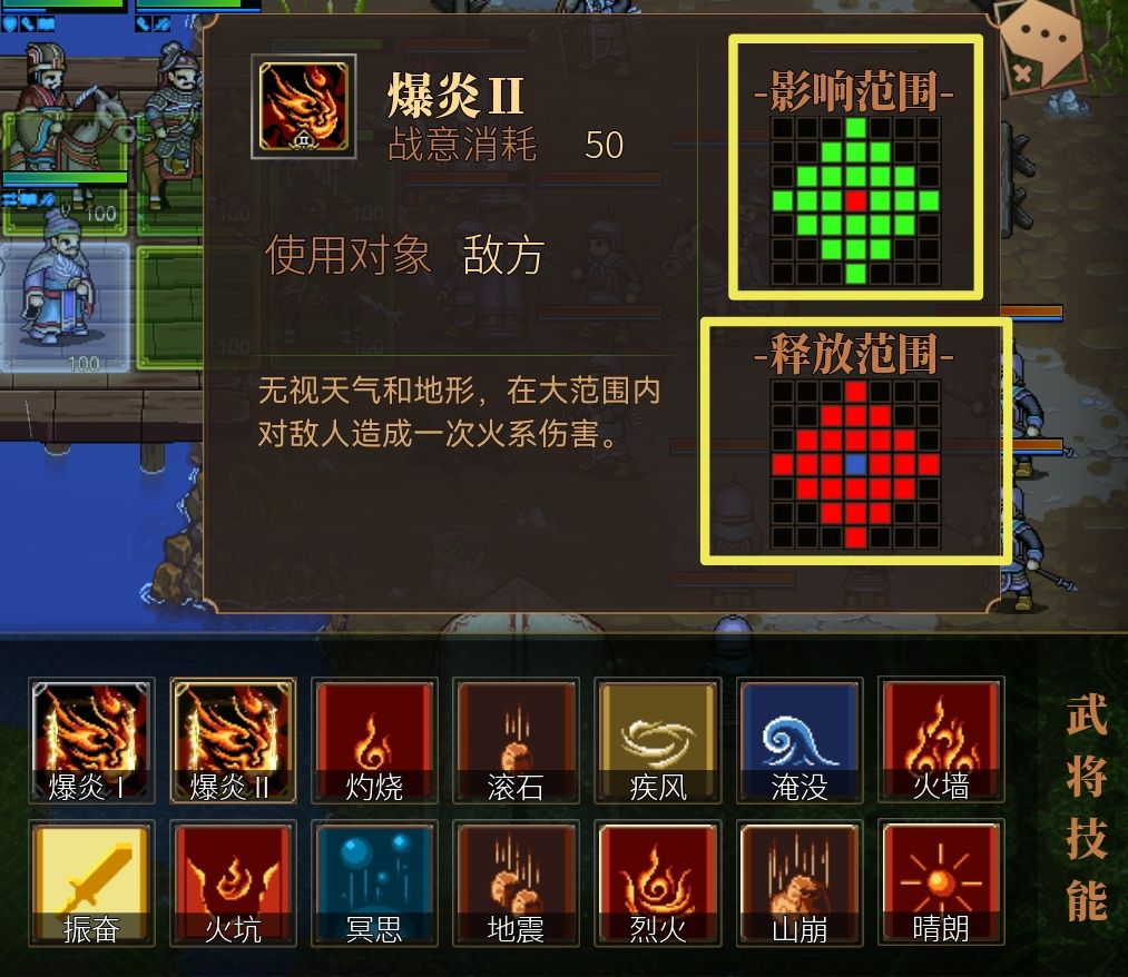 大家需要注意一个现象:法术释放和简雍地形和天气有关,敌人是否会挨打和敌人地形有关。