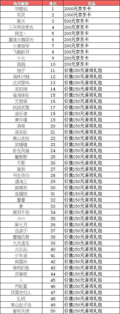 5.请及时关注游戏内邮箱信息及时联系客服,在公布榜单后15日内未联系客服即视为自动放弃。