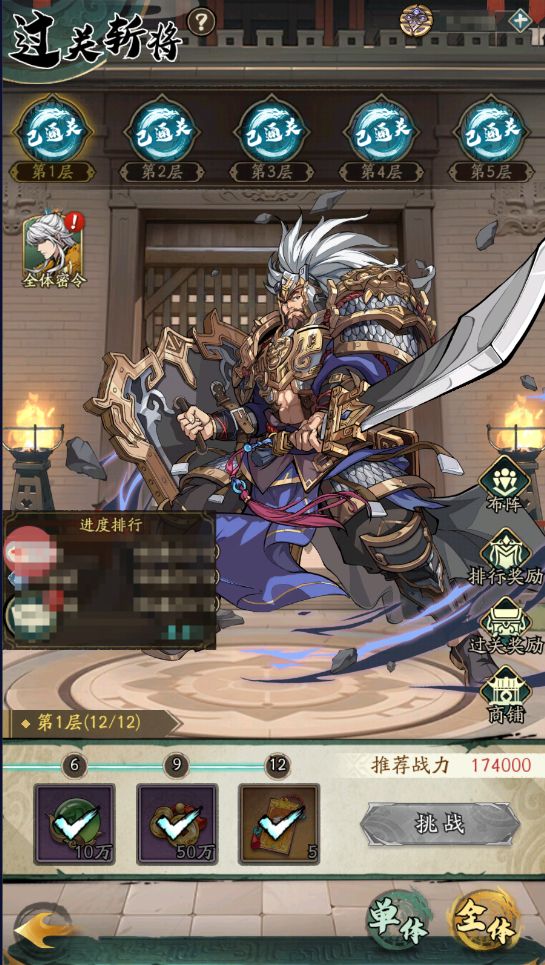 第二天达到等级开启过关斩将;从主页-历练-过关斩将进入,分为全体和单体试炼,都是180关。