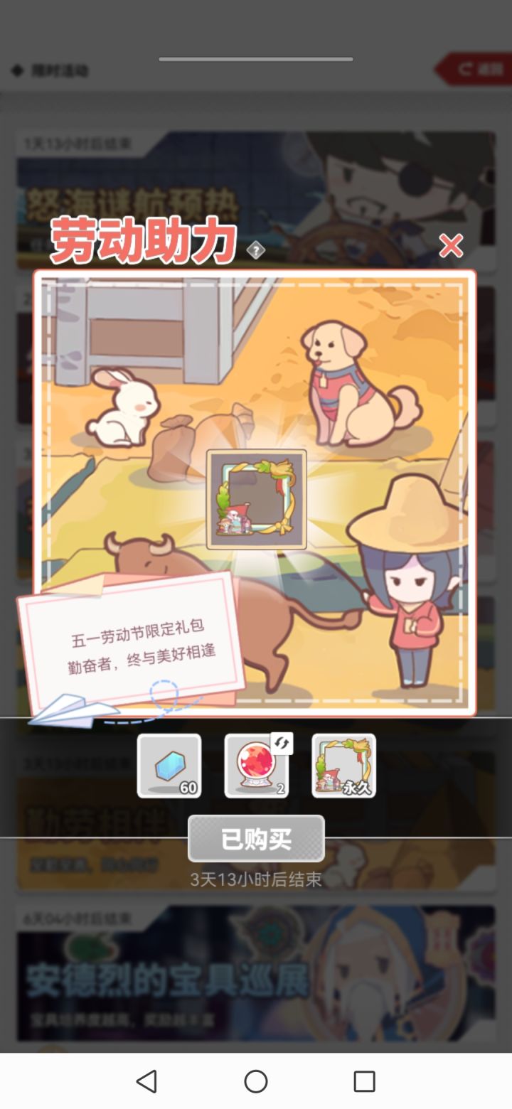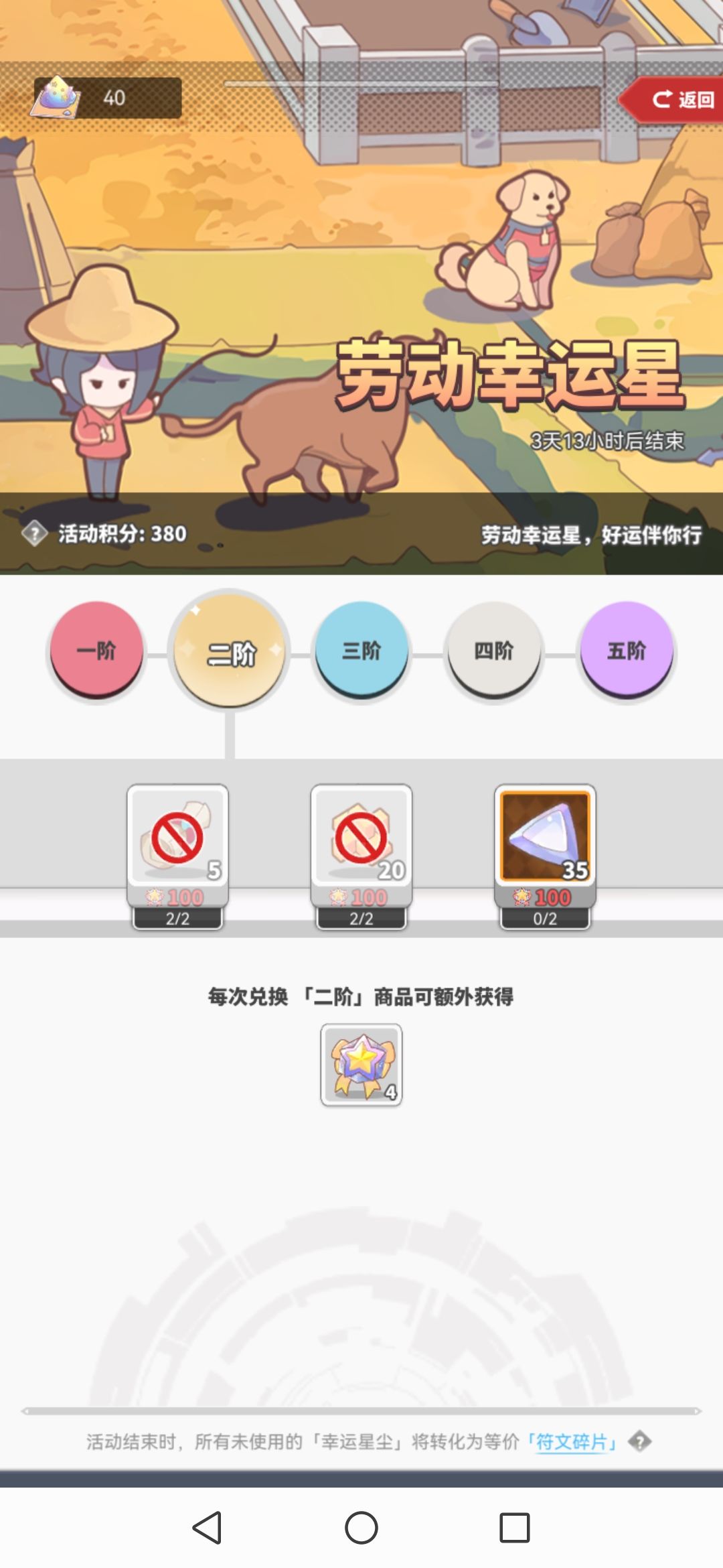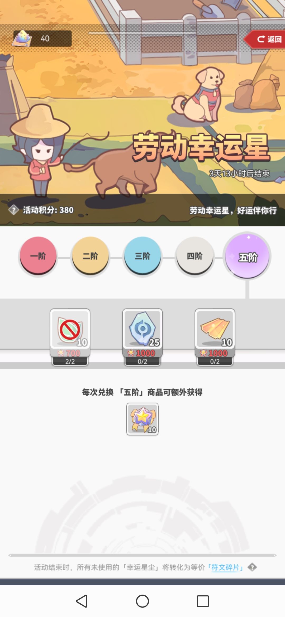 核心奖励是五一活动限定的两个宝具(加攻和生命的),所以低投入玩家尽量按解锁攻击宝具,生命宝具的顺序来规划。如果有多的箱子甚至可以考虑主兑换攻击宝具用于后期的升星(三星宝具需要40碎片,四星宝具需要80,后面的我没见过不清楚)。