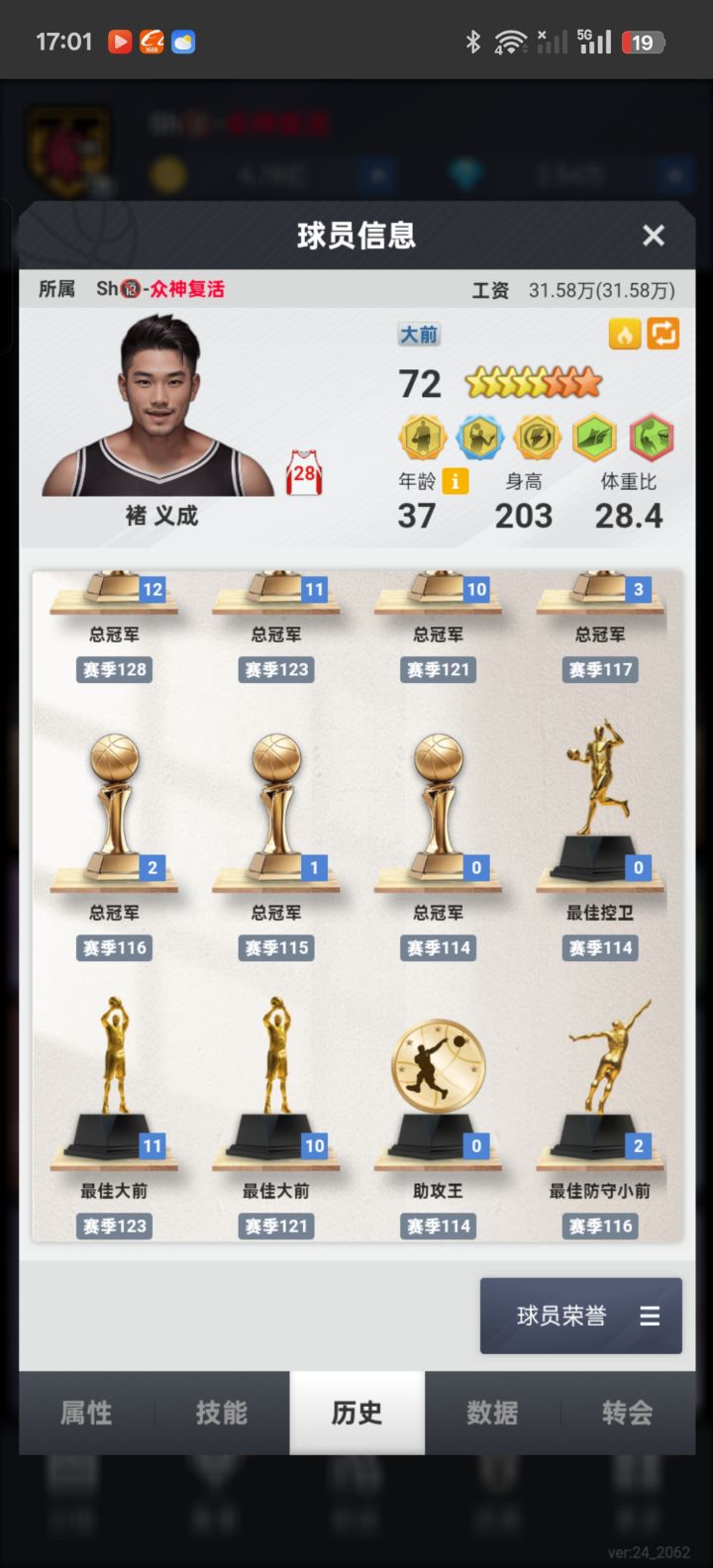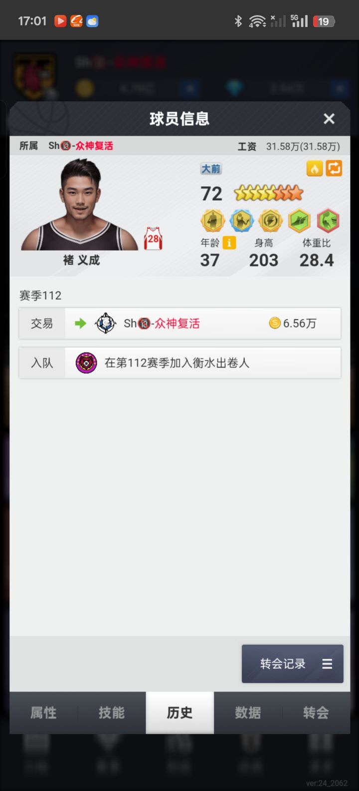 褚义成,目前离队,司职大前锋,擅长无球和俩分,可以依靠挡拆发起二人转,速度同位置拔尖,防守和篮板偏弱。
