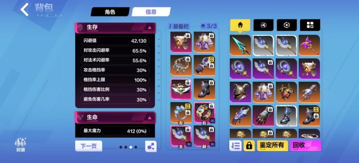 4.闪避:特性2的拿了闪避+鞋子,算上天赋加成可以有4W左右的闪避,65%攻击闪避+55%法术闪避
