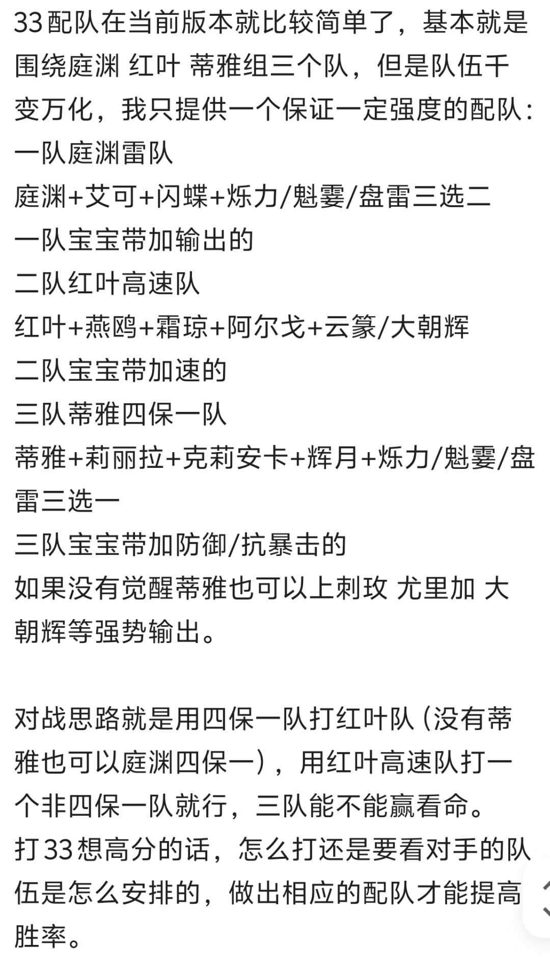 由于发帖字数限制,战员培养攻略,11配队及思路,33配队及思路请看图片。