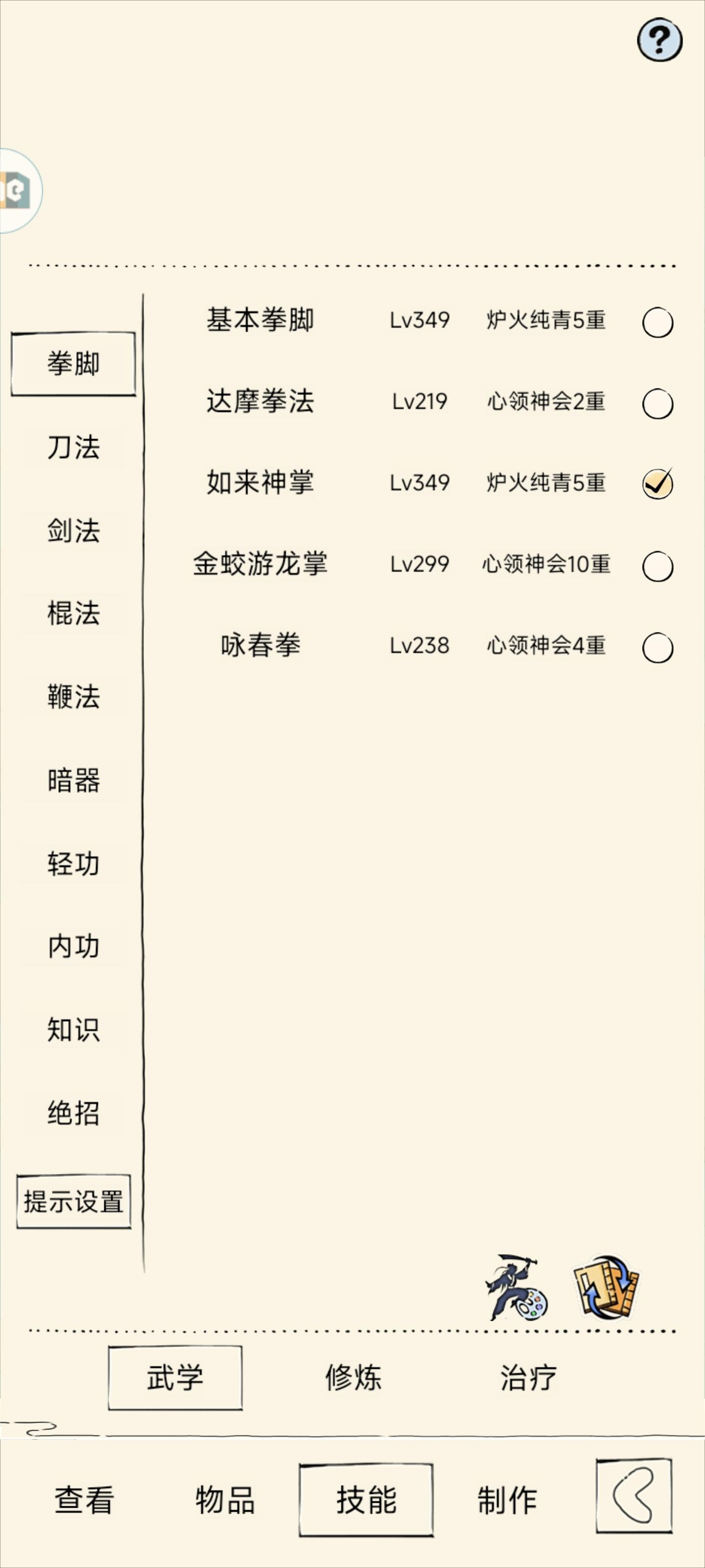 基础内259 易筋经219 轻功和水上漂都是300 预计大富翁结束有26个生身丹 还有90多组熊猫人 菜地里还有4朵绝品雪莲没摘