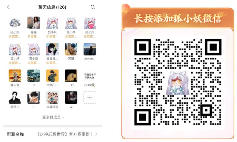添加方式:扫码添加狐小妖并发送关键词【赛事群】即可~