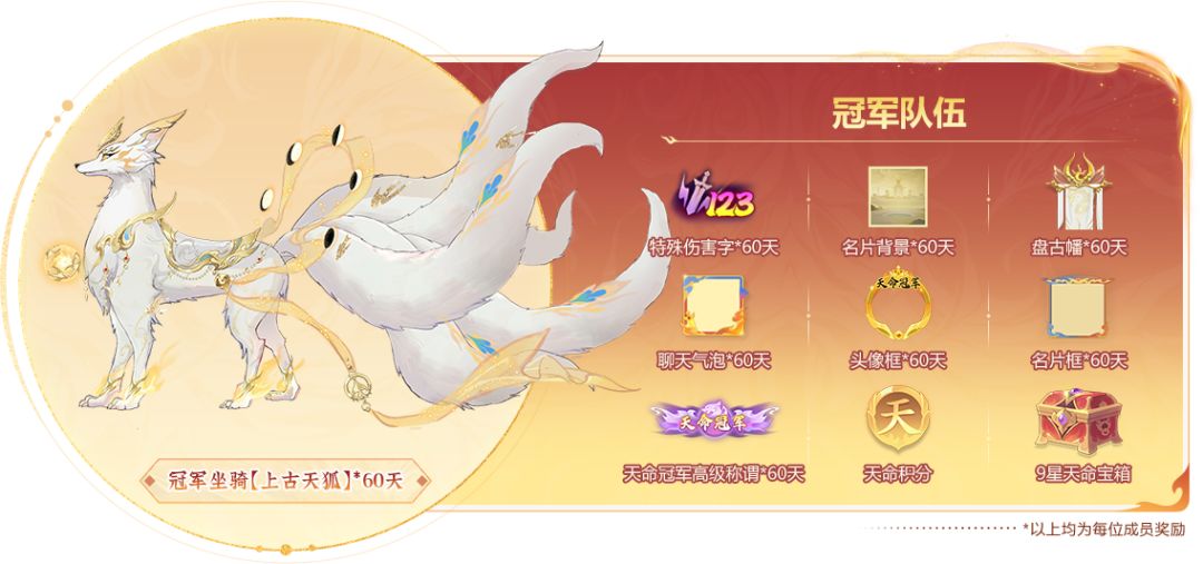 除了限时坐骑【上古天狐】等冠军奖励,