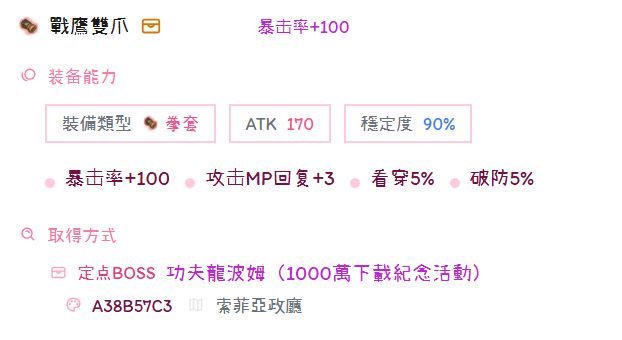 整套除了衣服都是较为容易取得的,主手在雪球活动,副手周年铁匠铺,一年一换,衣服开爱德华的箱子,追加小怪掉落,戒指是情人节活动小怪掉落。