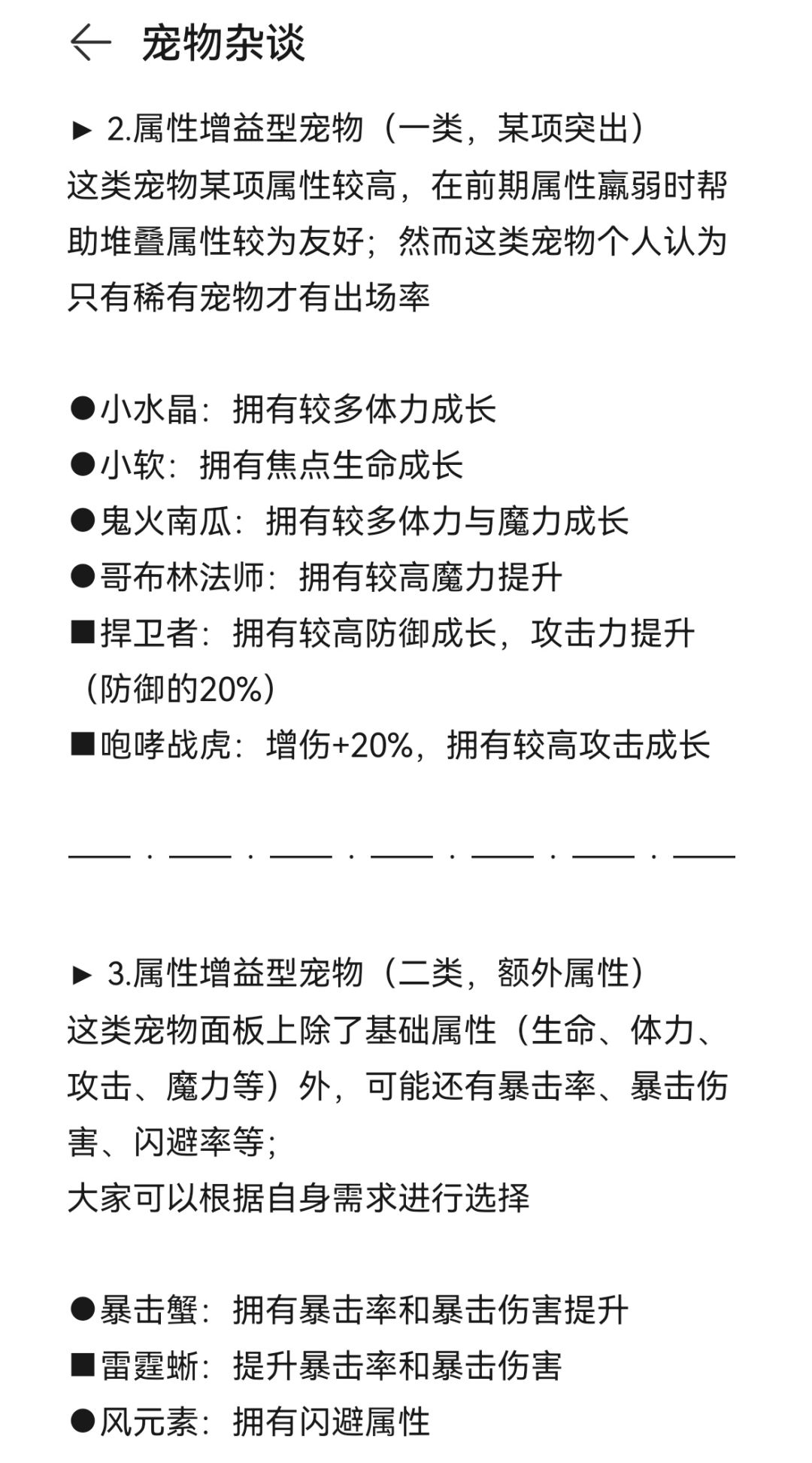 ▶3.属性增益型宠物(二类,额外属性)