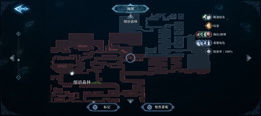Ⅱ.可在「细语森林」此位置遇见,初次只能从下方绕路上来,与她对话后右侧机关才会开启