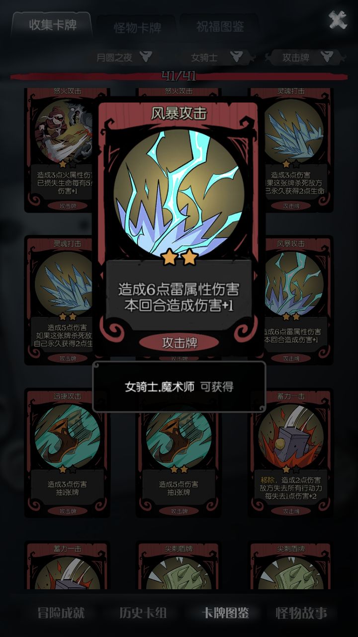 1.风暴攻击:作为最容易获得的增伤牌,风暴攻击有着不可掩盖的优越性,例如——本身自带一定的输出,过渡平稳。最重要的一点,他是一张攻击牌,可以被旋风斧出发。