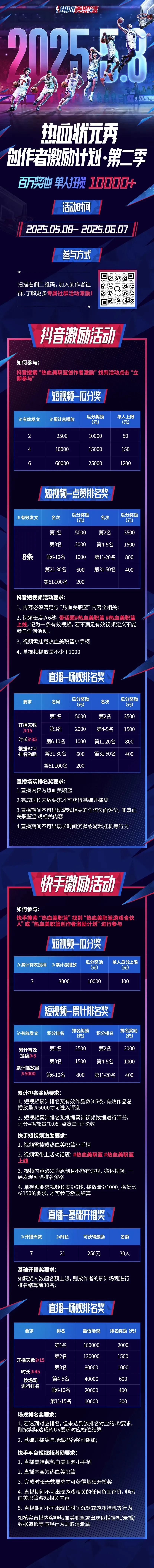 百万奖池,单人狂揽10000+!热血美职篮创作者激励计划今日开启!