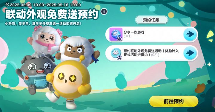 Step1:5月9日10点-5月16日10点期间,完成活动预约,直接提前获赠大量羊狼币;