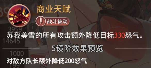 苏我美雪的所有攻击额外降低目标330怒气。