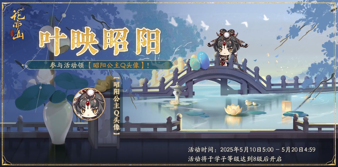 活动说明:活动期间,学子参与,可获得昭阳公主Q版头像、花诏令、金叶子、银纹玉樱等奖励,详细活动规则可见游戏内说明。