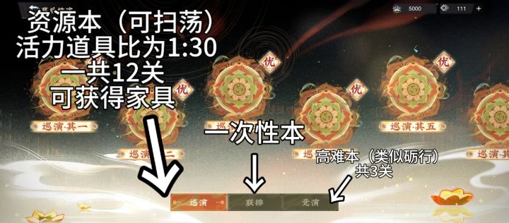 ①巡演:资源本,共12关(体力:道具比为1:30)