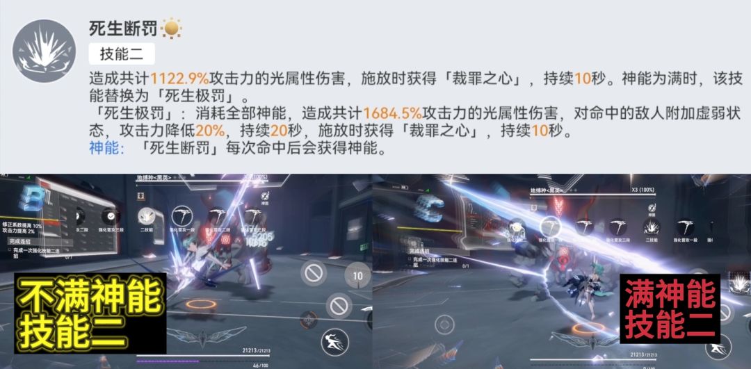 - 满神能2亮了,不按不会消失。当然可在奥义或3前,满神能2+闪避 ,aa11上「渡厄」buff