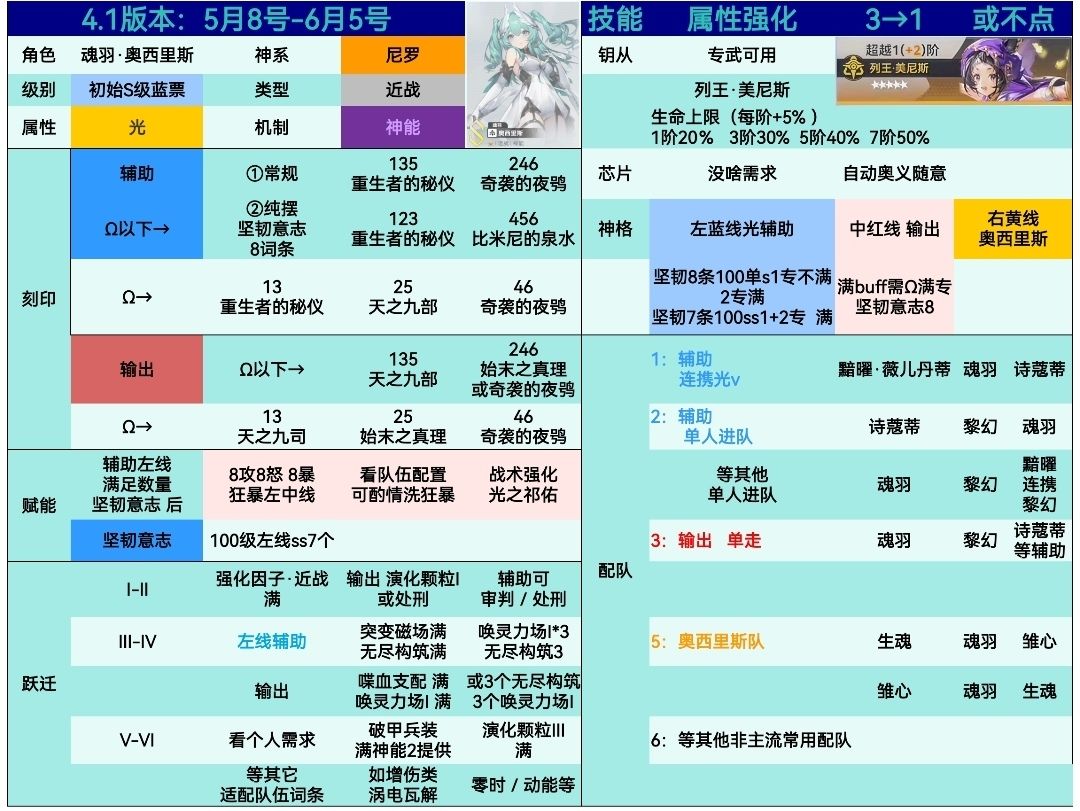 #深空之眼苦岸行旅 4.1版本 魂羽·奥西里斯 个人杂乱介绍攻略(不涉及对轴,游戏理解水平有限,仅供示例,若有其他问题以最新时空为准。不喜可以x划走。若有出入欢迎评论区友好指正。谢谢。长文废话多。)