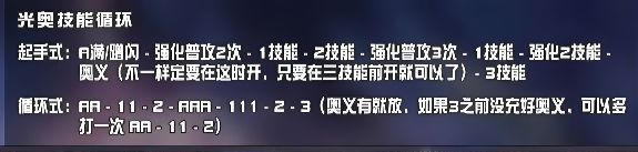 - 下落攻击:空中阶段结束(持续结束或主动点3)时发动,直接造成光伤并为全队提供12%奥义值。
