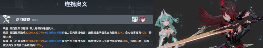 - 连携奥义:比之单人奥义,再提高了5%攻击力, 5%会心伤害。