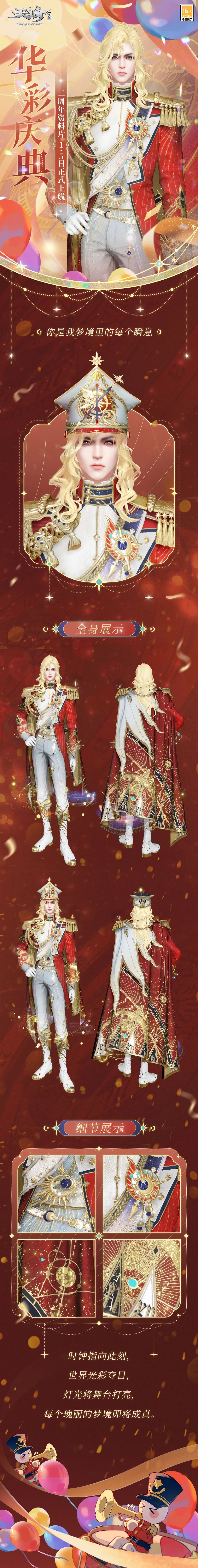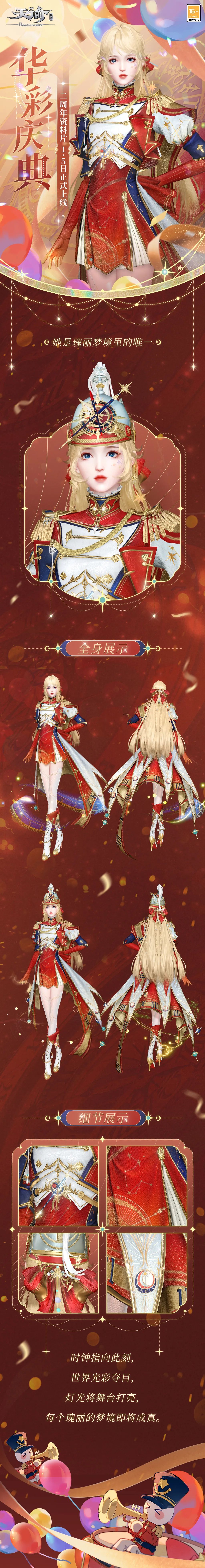 3.参与收集典藏外观【华彩庆典】系列外观可获得限定称号“星彩华光贺生辰”、双人坐骑【鼓手进行曲】、绕身特效【奇梦焰风】等珍稀道具。