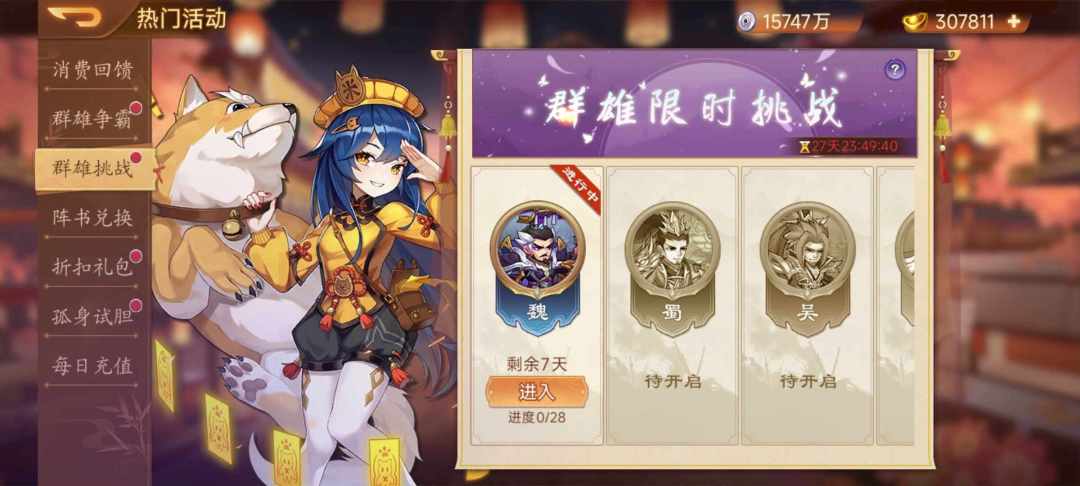 活动内容:活动期间开启限时副本挑战,活动副本共有7层,每层4关,每次过关可获得奖励。每日解锁一层可进行挑战。