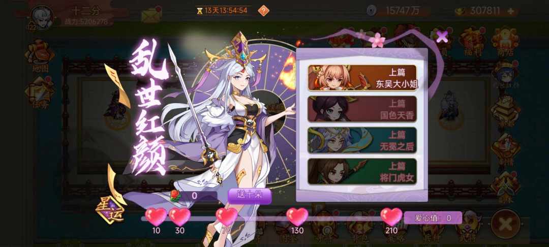 活动内容:活动期间,完成乱世红颜剧情副本挑战收集玫瑰花,赠送玫瑰花获取爱心值领取奖励。(活动结束时未使用的道具“玫瑰花”将会被过期清除)