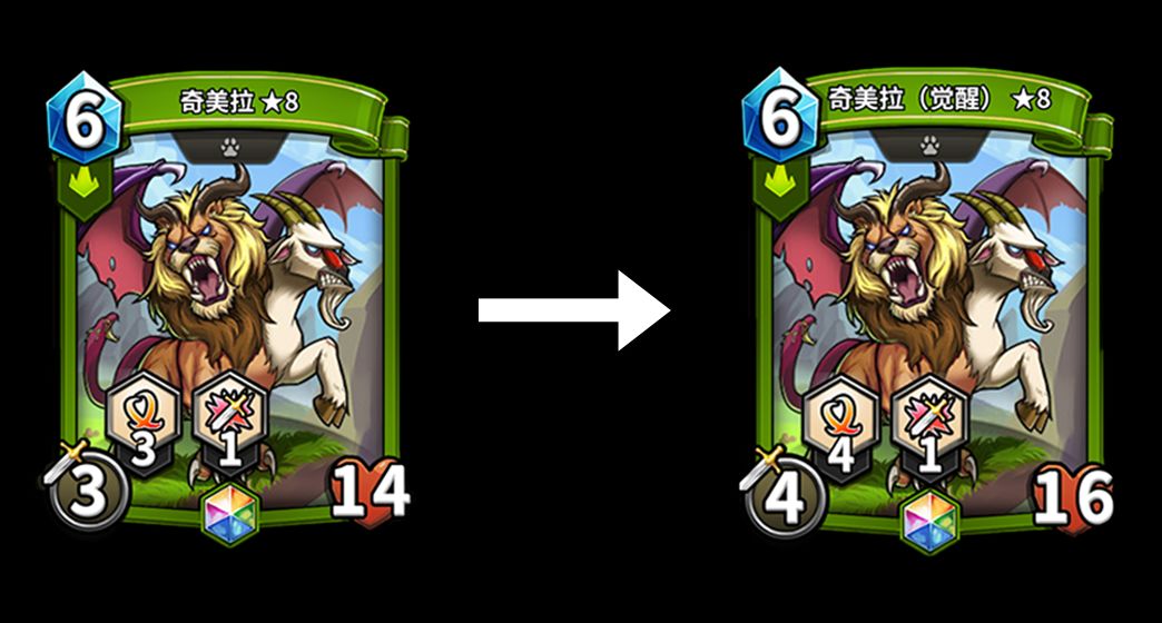 奇美拉觉醒:攻击,横扫增加一点,血量增加两点