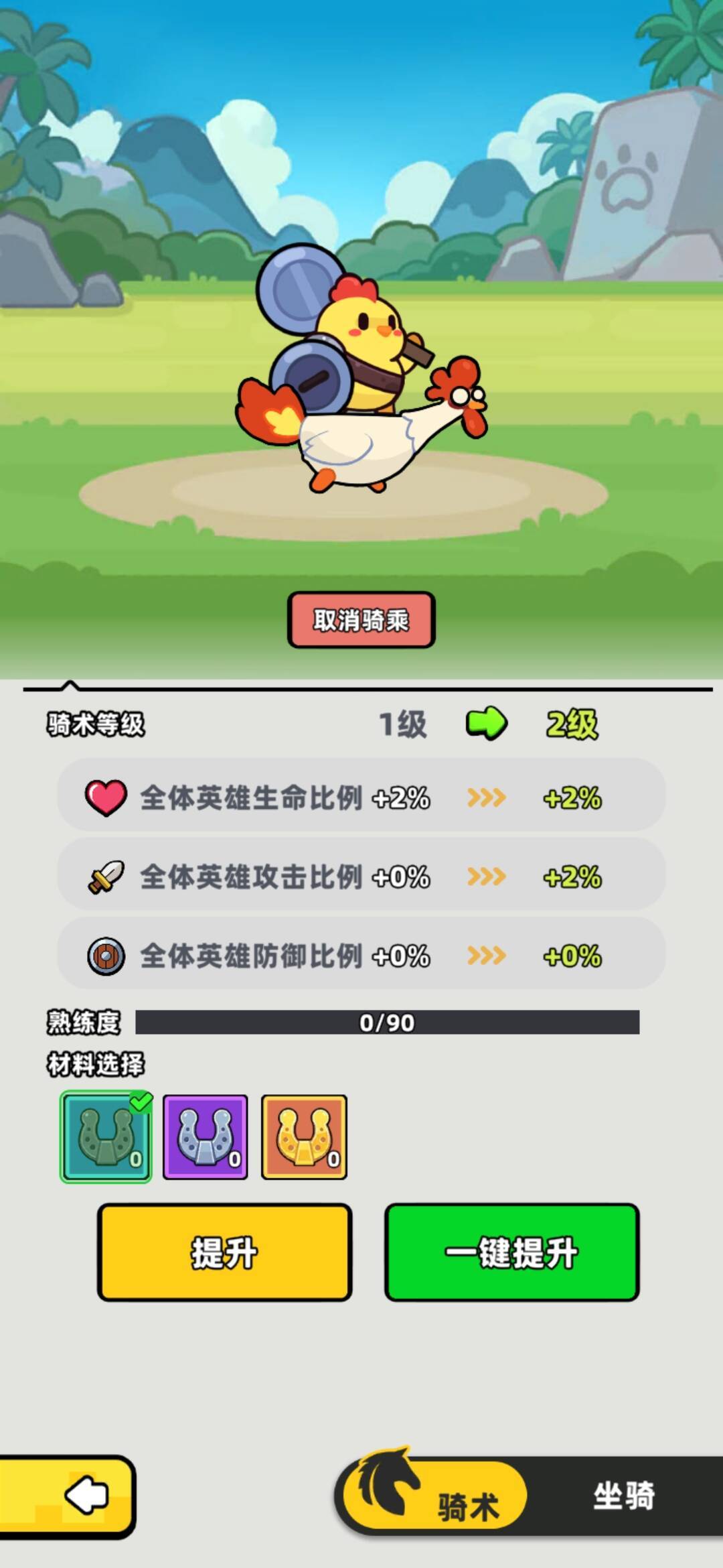 🔷骑术方面,玩家消耗材料可获得骑术经验,每次骑术升级都能为全体英雄带来属性加成,全面提升队伍战斗力。