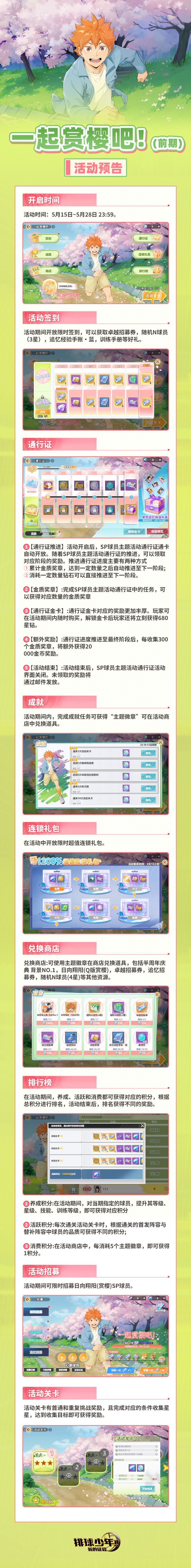 🌸新「半周年庆典 背景NO.1」上线,还有「日向翔阳(Q版赏樱)」头像、「卓越招募券」、「追忆招募券」等奖励等你收获!