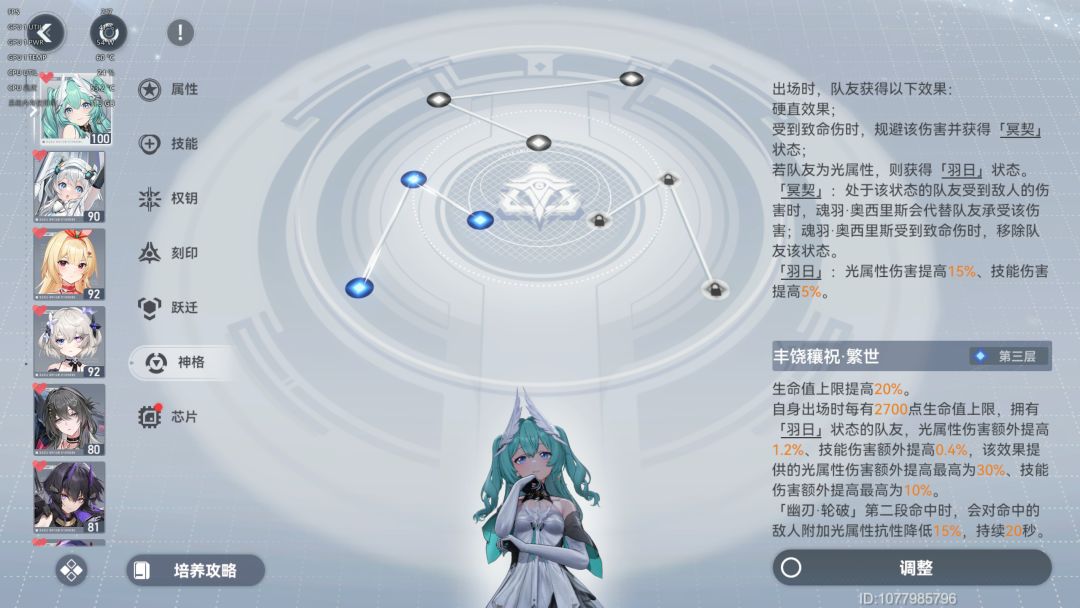 2.释放奥义/连携奥义时,全队光属性修正者提高15%暴击率,持续15s。