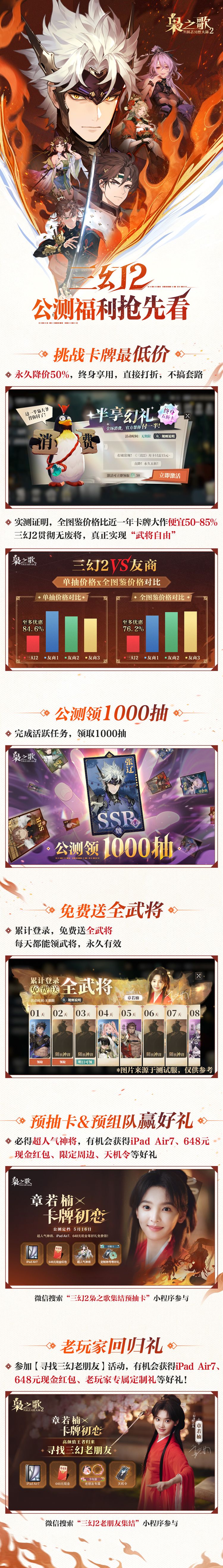 挑战卡牌最低价?全场消费减一半?公测狂送1000抽?登录领取全武将?