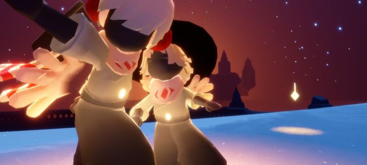 游戏最初的震撼来源于一次偶然的“牵手”。在晨岛的沙漠中,我因能量耗尽而狼狈坠落,素不相识的玩家突然停在我身旁,主动递出蜡烛与我成为好友,随后牵起我的手,带我飞向高处的云层。我们全程没有语言交流,却通过简单的动作与光翼的振动传递着默契。那一刻,我忽然意识到,《光遇》的社交逻辑是反“功利”的——陌生人之间的善意不需要理由,也不必以利益交换为前提。那些默默为你点亮心火、陪你收集烛光的身影,或许正是现实世界中逐渐稀缺的“纯粹温柔”。