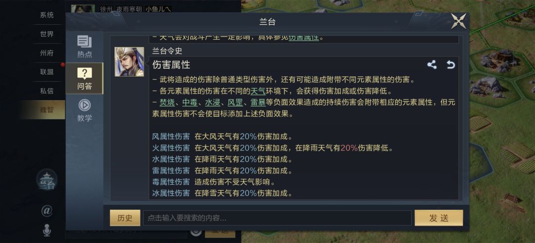 这段描述中涉及了好几个点,①武技类型,②负面效果,③天气系统。前两点在之后的【萌新帮扶计划】中我都会展开讲,第一期我们先着眼于第三点,天气系统。