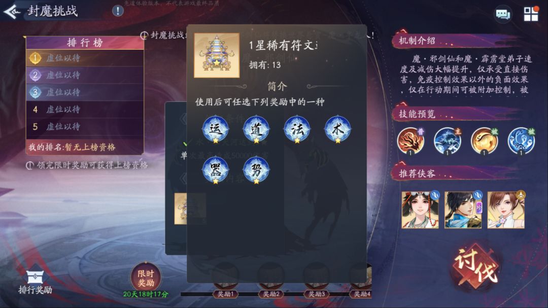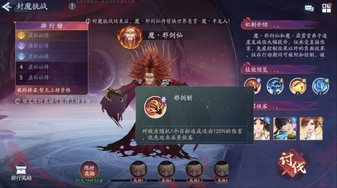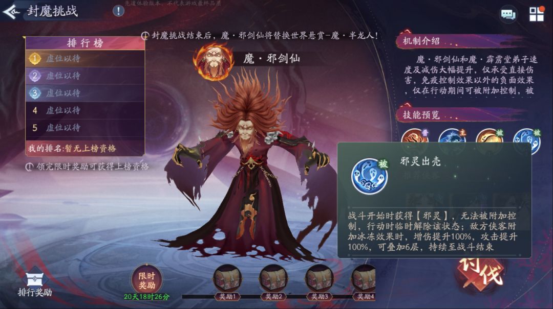 来看本次新赛季魔·邪剑仙的挑战机制