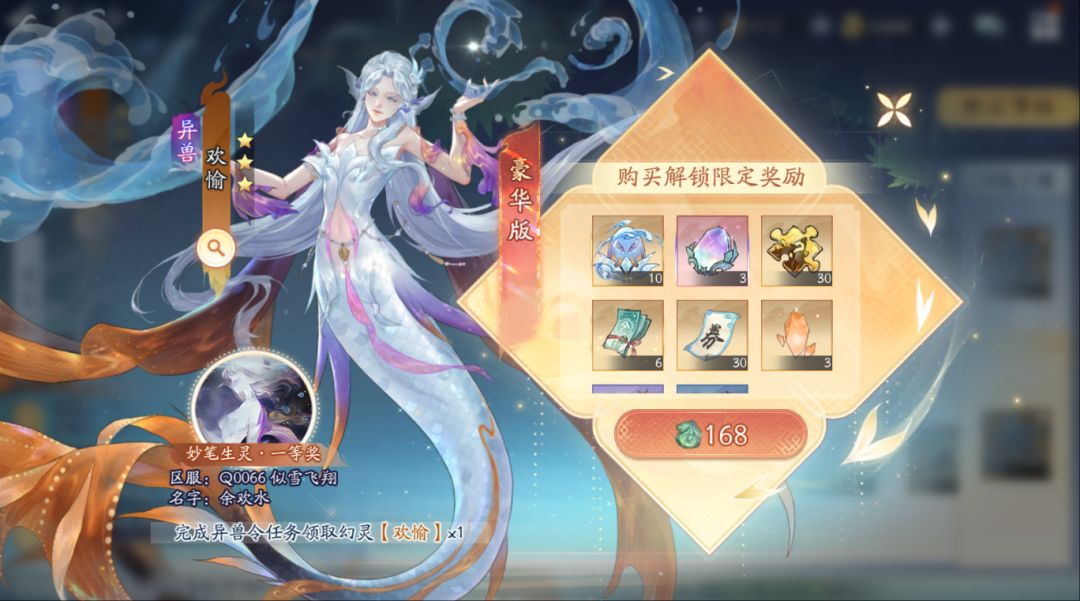 本赛季新降临三星异化幻灵为——欢愉,还是跟往常一样,异兽降临期间捕获概率提升,异兽令保底3个精元,168豪华版可解锁10个精元,宝子们快去捕获新幻灵吧~~~