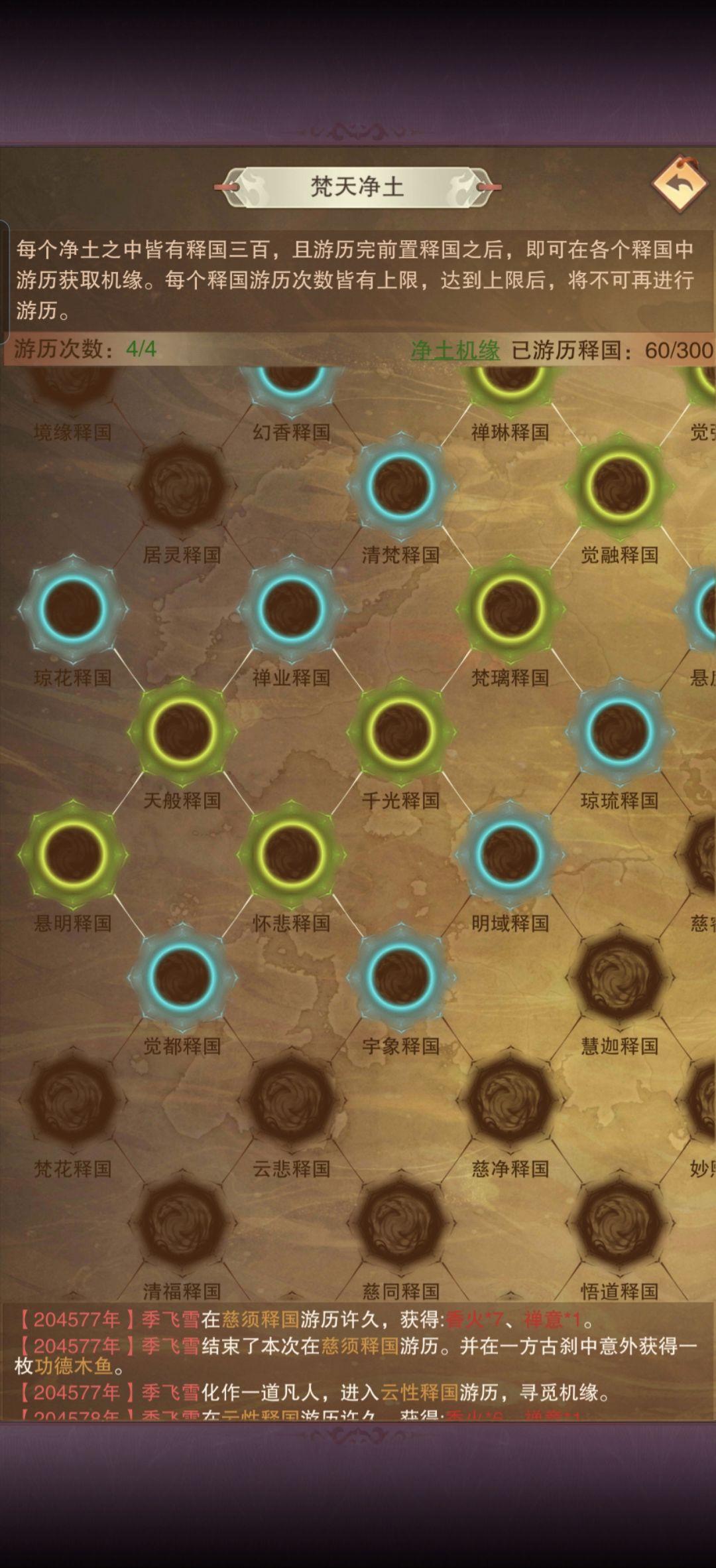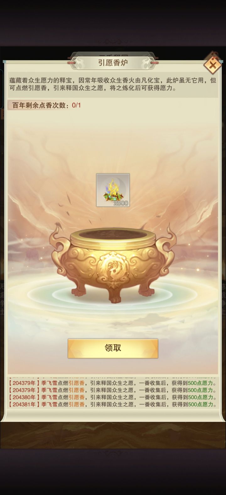 功德木鱼在最右边往中间一点的慈须释国,香炉在最左边的悬明释国