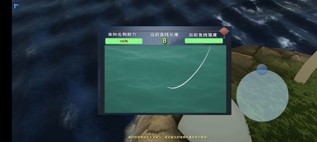 钓鱼以Y轴。。就是往上方或者往下方拉的距离决定力度,力度过大会脱钩