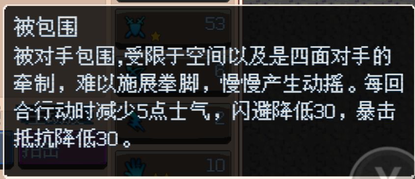 另外如果目标被包围,则会有被包围的负面状态: