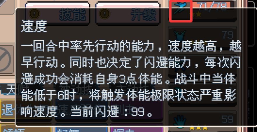但也不能一味提高速度,每次闪避需要消耗3点体能,当体能低于6时,会触发体能极限状态,严重影响速度。