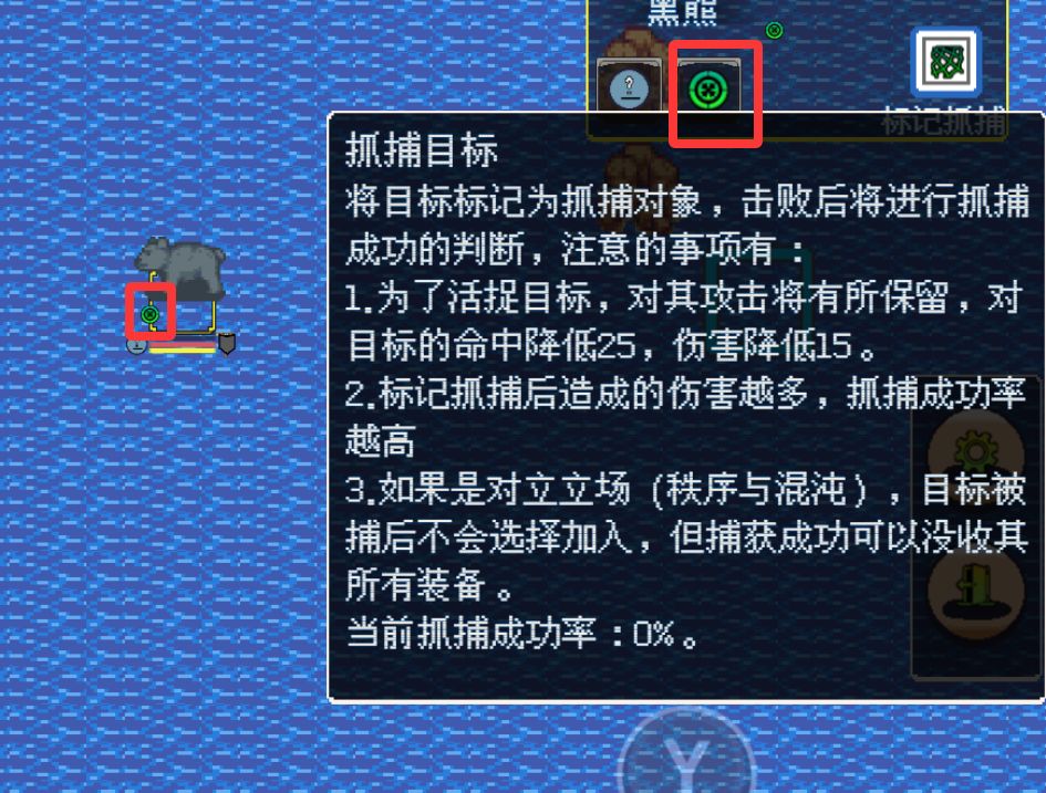 点击右上角的抓捕开关,对敌人进行抓捕标记。对目标长按X键也可以快速标记。